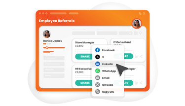 Employees can share available vacancies via: email, Social Media, LinkedIn, QR codes and WhatsApp messages.