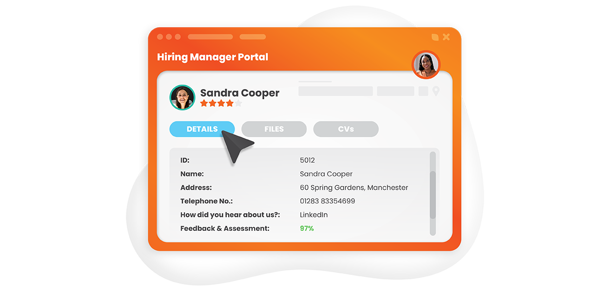 Candidate PortalYour candidates can access their secure profile on any device, update their profile, see their application progress, pick their interview slot and even sign your offer and contract.