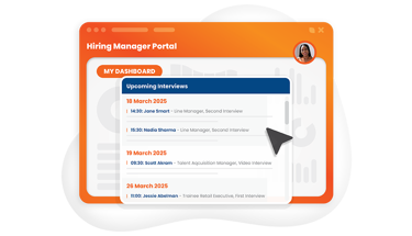 Easy to use, at-a-glance access to the hiring manager's interview calendar ensures nothing gets missed.