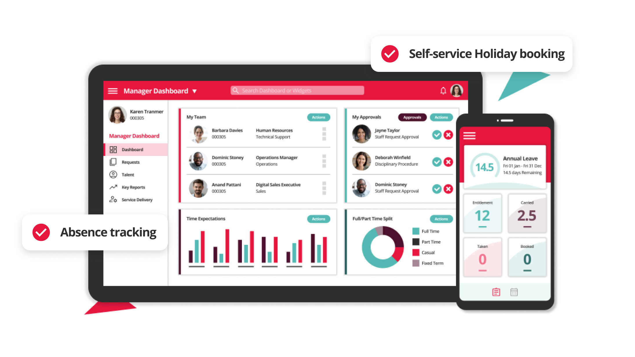- Self-service holiday booking for employees