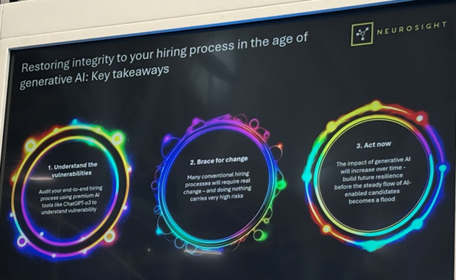 At IHR Live London 2025, Jamie Betts, founder of Neurosight, delivered an insightful session about how to build a hiring process that’s truly ChatGPT-proof, as well as restore trust and integrity from application to offer. Jamie shared these practical steps: