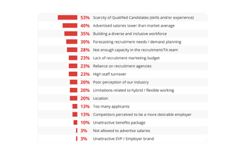 It seems that the Education sector is experiencing a similar issue as other sectors - candidate scarcity in the main, followed by advertised salaries being lower than the market average. Building a diverse and inclusive workforce also features highly, with 35% of respondents citing this as a key challenge.