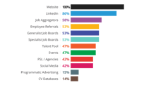 The main sourcing channels used by the Education sector to attract candidates is Website/Careers Sites (the most-used channel 100%), followed by Professional Social Networks, such as LinkedIn (86%).